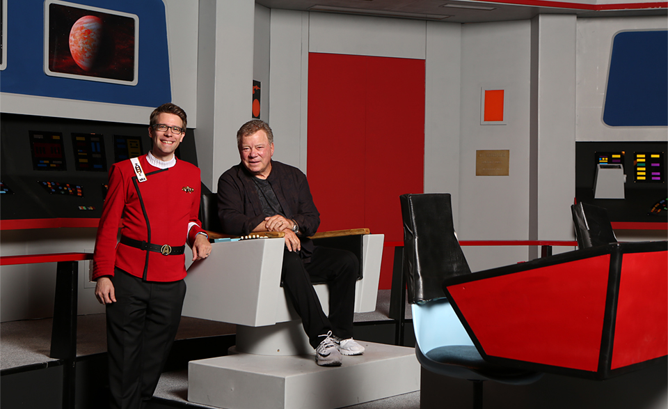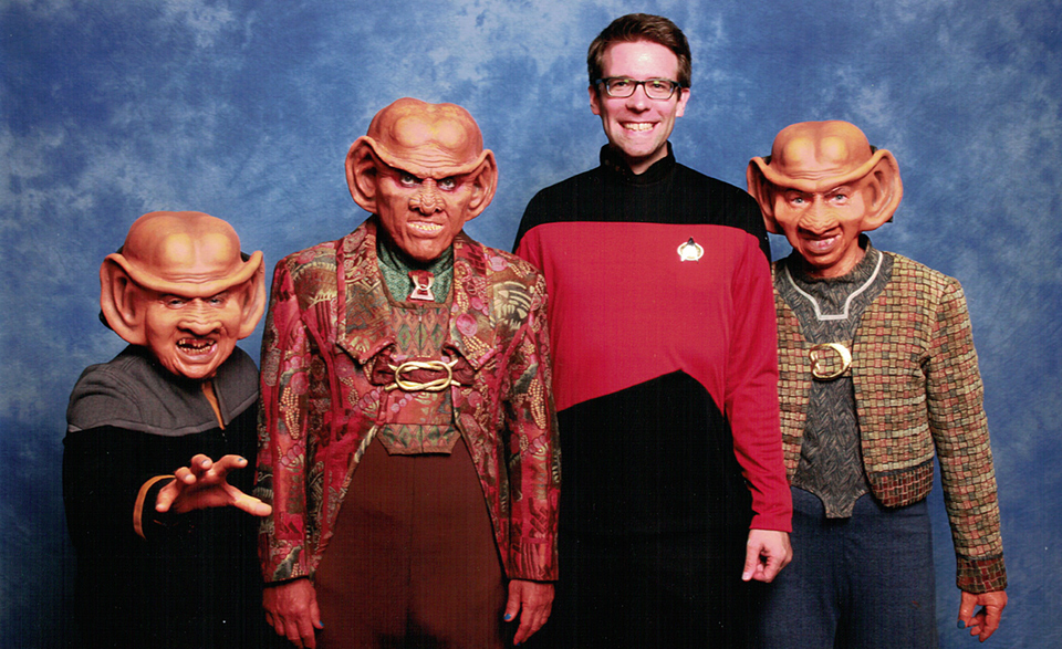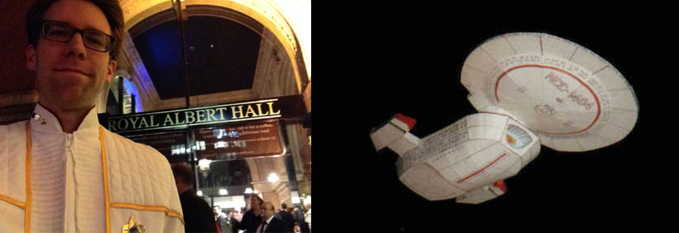 Science Fiction ist super! Besonders Star Trek mit dem Beamen, futuristischen Apparaten und Besuchen auf fremden Welten hat es mir angetan. Ich bin mit Captain Picard auf dem Fernsehbildschirm aufgewachsen und ein Next Generation-Trekkie. Aus meinem Plan, im Keller meiner Eltern eine Raumschiff-Brücke einzurichten, ist leider nie etwas geworden. Ich habe aber trotzdem mein eigenes Raumschiff (selbst entworfen und im 1996 aus Karton und Papier gebastelt, die Fenster sind Nullen und stammen aus der Schreibmaschine), fünf Uniformen und vieles mehr von Star Trek. Besonders stolz bin ich auf meine Gala-Uniform: Diese habe ich selbst auf der Nähmaschine meiner Schwiegermutter genäht und war damit an der Aufführung von Star Trek: Into Darkness mit Live-Orchester in der Royal Albert Hall in London.