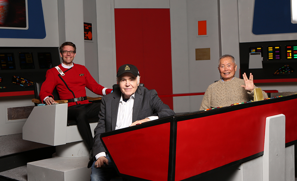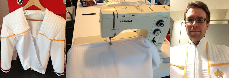Später dann, mit der neuen eigenen Nähmaschine, habe ich mir eine «Monster Maroon» Star Trek Uniform genäht, die wir aus den Filmen 2-7 mit der Original-Crew kennen. Sie wurde gerade rechtzeitig fertig, um Captain Kirk, Lieutenant Sulu und Fähnrich Chekov zu treffen.