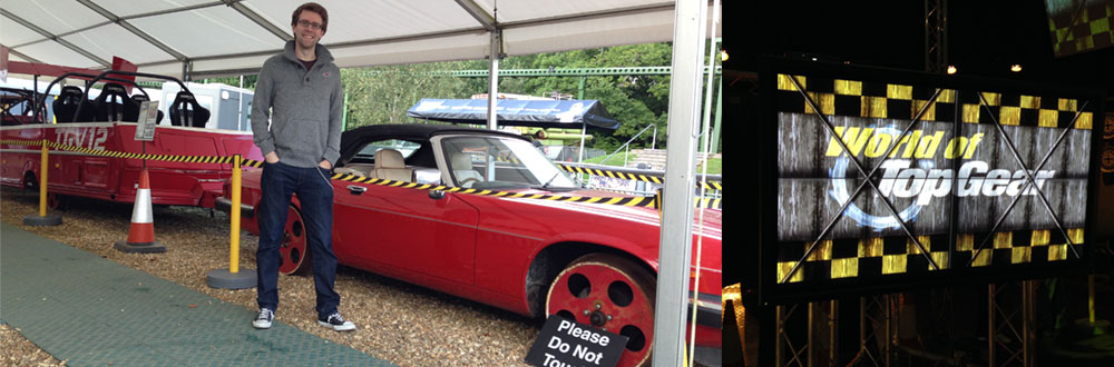 Wir sind also ins Dunsfold Aerodrome in der Grafschaft Surrey gefahren, am schönsten Spätsommertag, den man sich nur vorstellen kann. Wir konnten uns nach Herzenslust im Studio umsehen, das sich in einem Hangar des Flughafens befindet. Ich durfte sogar in den Sesseln von Jeremy, James und Richard sitzen! Fantastisch!